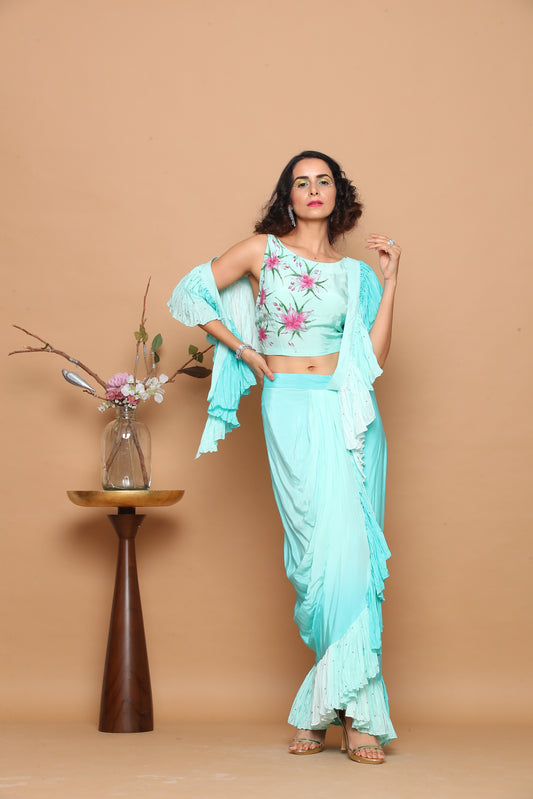 Mint Green Pre-draped Saree