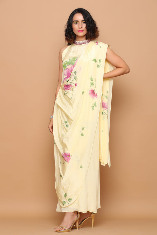 Hand-painted Saree Gown